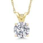 Experience timeless brilliance with this 1.00 Ctw round lab grown diamond pendant necklace. Expertly crafted in solid 14K white or yellow gold and AGI certified for F color and VS clarity, this pendant showcases stunning sparkle, ethical craftsmanship, and modern luxury. Includes an 18β gold-plated chain.