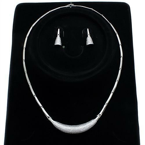 3W1245 – Rhodium Brass Jewelry Sets with AAA Grade CZ in Clear