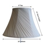 - EGG SHELL SILK FABRIC: Shade silk fabric egg shell is a favorite of designers for its depth and character and its ability to blend with most decor styles. Shade measures 8″ top x 16″ bottom x 12″ slant height