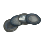 Unique agate coasters are perfect for guests. These natural coasters come in two sizes, with four coasters in each set. Glamorous yet useful, enjoy the shimmering patterns found in each specimen. Choose your favorite color agate with a natural trim.