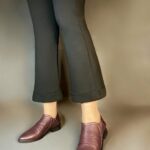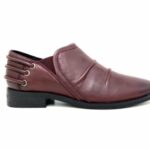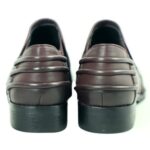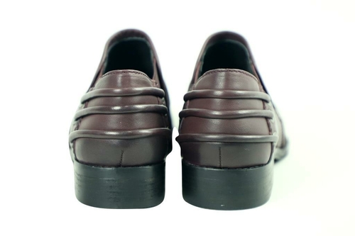 Elegant leather loafers featuring a slouchy upper design, decorative back leather cords, a low block heel, and side elastic goring for easy wear.