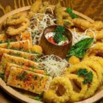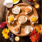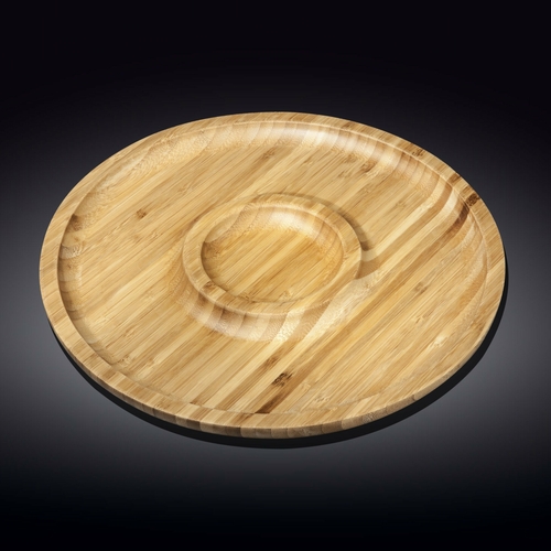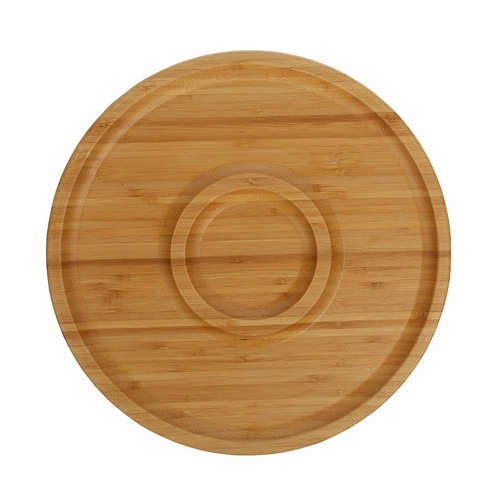 Platter, 2-section, 14″ dia. (35-1/2 cm), round, natural bamboo.