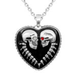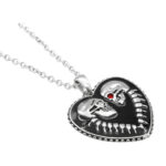 Let that special someone know that not even death will do you part with the Bound For Eternity Skull Heart necklace. Made of stainless steel, the pendant on the Bound For Eternity Skull Heart necklace is decorated with black epoxy to bring out the skeletal details. Complete with a stainless steel link chain, the enchanting pendant on the Bound For Eternity Skull Heart necklace also sparkles with a white Swarovski crystal eye for him and a red Swarovski crystal eye for her. 316L Stainless Steel with Black Epoxy and white and red swaroski crystals Pouch included Pendant Size: W: 1.34″ H: 1.3″Chain Length: 27″