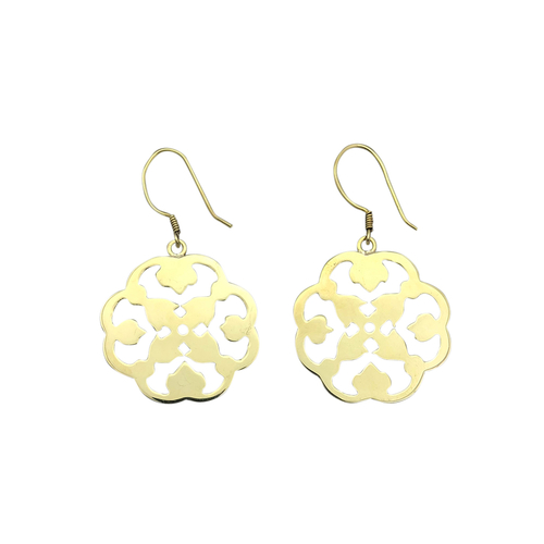 These intricately carved, clover like earrings turnΒ war into peace.Β They are highly polished andΒ handcast by a vulnerable artisan group in Cambodia from recycled brass bombshells.