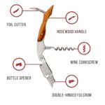 - Aside from the premium quality of this opener, it has a 3 in 1 multi-function capability. This corkscrew does not only have a wine corkscrew, but it also has a bottle opener and the previously mentioned foil cutter. Each openerΒ has a 420 stainless steel core sheathed betweenΒ two solid rosewood hand-grips. Β