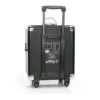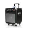 Bluetooth Party Mini packs big sound with wireless, Bluetooth streaming or USB/SD/FM playback, and 300W pumping through the 6.5” woofer and 1” tweeter. Included dynamic microphone and guitar/microphone inputs. Built-in disco dome light, rechargeable battery and roller wheels for ease of transport.