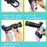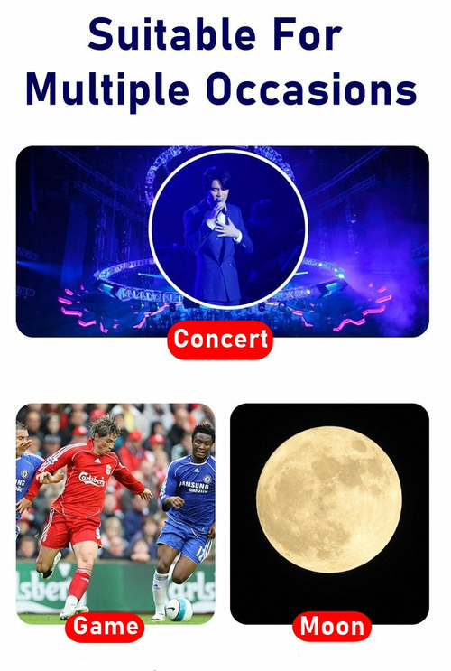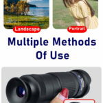 This extendable 36X high-power mobile phone lens has dual focus adjustable for the objective and eyepiece, not only easily adjust the focus of the lens by rotating the focus ring to bring those long distance scenes into clear images without any dark, it also can work as a monocular telescope too.