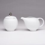 Inspired by the ceramics of Eva Zeisel, the EVA teaset embodies her design philosophy of attracting the hand as well as the eye. Simple, elegant and delightful to handle, the Eva teaset won the 2014 Golden Aβ Design Award for Tableware. Available in glossy white porcelain with silver plating, or a black matte stoneware. Each piece is thoughtfully designed for enhancing the senses at tea-time.