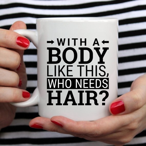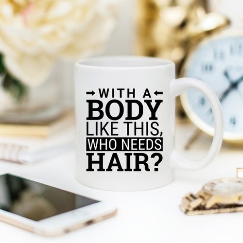 So what are you waiting for? Click the βAdd-to-cartβ button and get your “With A Body Like This, Who Needs Hair? – Funny Coffee Mug” while supplies last.