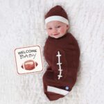 - Includes baby cocoon swaddle, matching headpiece and newborn announcement card.
