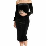 Be the first to review “Joia Dress – Velvet off the shoulder long sleeve dress with faux fur”