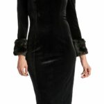 Be boudoir chic in our Joia Dress!Β  With a classic silhouette in luxurious velvet and faux fur accent cuffs, and an exposed back gold zipper this dress will make you feel glamorous all night long!Β  Accessorize this dress with some shoulder grazing statement earrings and strappy heels, and be prepared to get noticed!