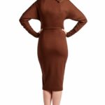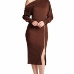 Go from modest to sexy in a Β is the perfect long sleeve midi dress in a rich chocolatey brown that will effortlessly take you from day to night with a quick unzip along the right shoulder down the sleeve!Β  Pair it with some leopard print shoes to show off your wild side, and gold earrings to enhance to gold exposed zippers on the dress!