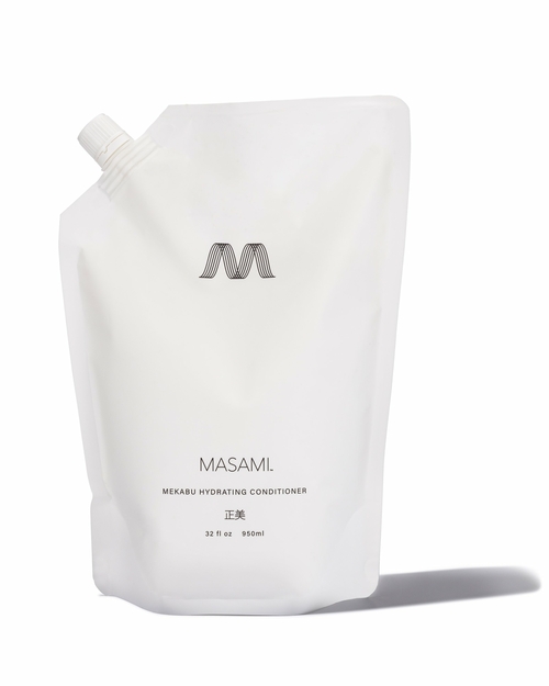 Following MASAMI shampoo, apply conditioner from roots to ends. Leave in hair for 1-3 minutes as needed. Rinse thoroughly. For continuous hydration, use daily. Follow with MASAMI Mekabu Hydrating Styling Cream and Shine Serum.