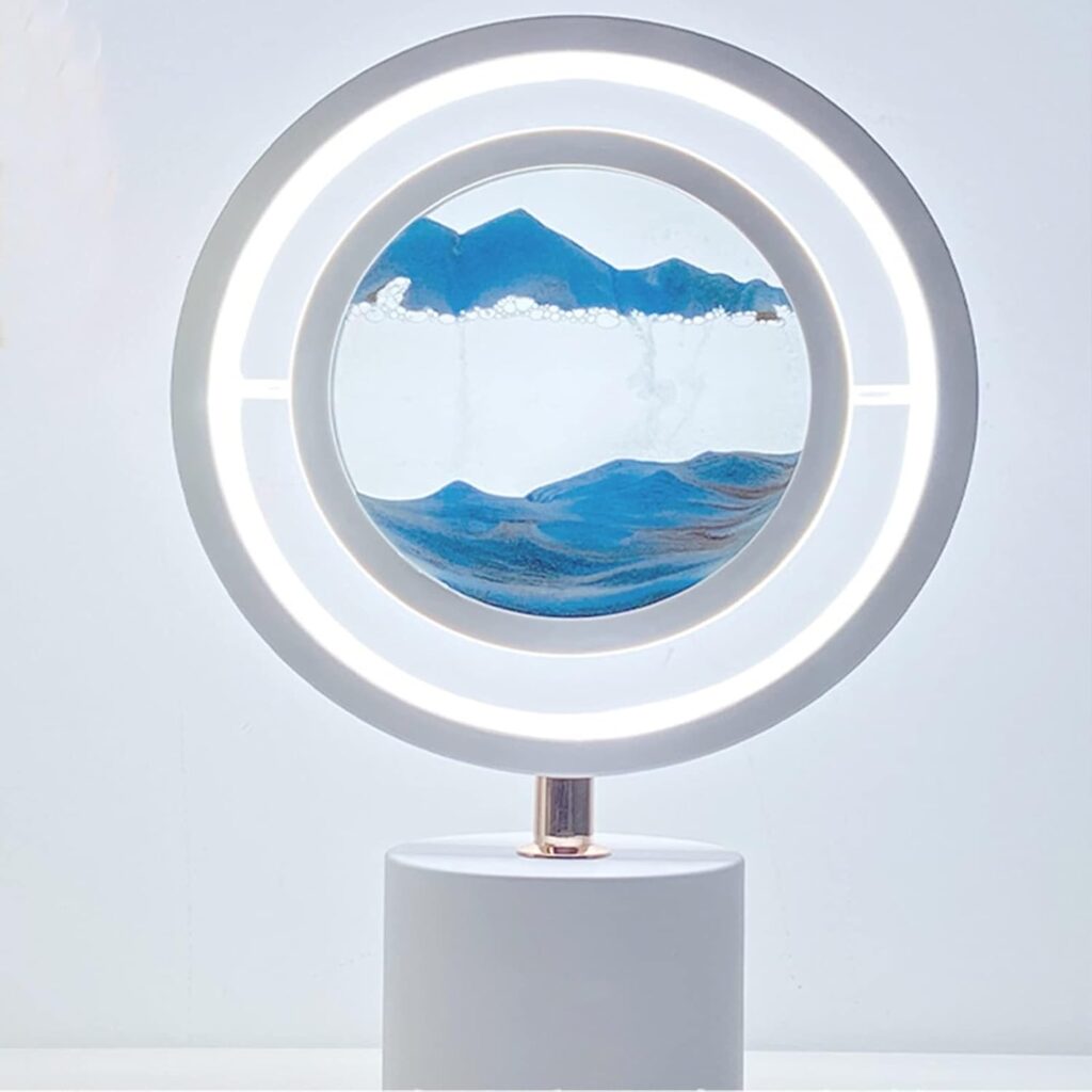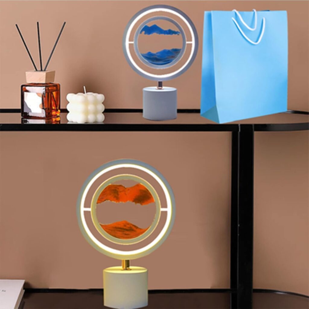 ransform your desk or bedside with this Premium Quicksand LED Table Lamp. Combining dynamic flowing sand art with soft LED lighting, it creates a calming visual experience that evolves as the sand shifts in its round glass frame. Perfect for modern home décor, office desks, or as a unique gift, this lamp blends functionality with captivating style. Its 3D sandscape offers a constantly changing miniature landscape, delivering both aesthetic beauty and relaxation at the same time.