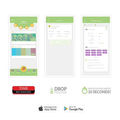 - APP & REPORT – Schedule, Manage, and Track your childβs lessons & progress throughout their educational journey. Use our free iOS or Android app for full content control and detailed progress reports including pronunciation scores.