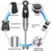 Elongated, detachable blending stick allows for dynamic use in tall containers, deep pots, and more