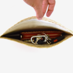 This bag can fit a cell phone, wallet, cosmetics and papers.