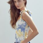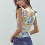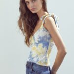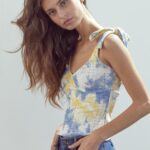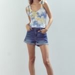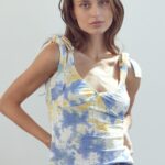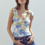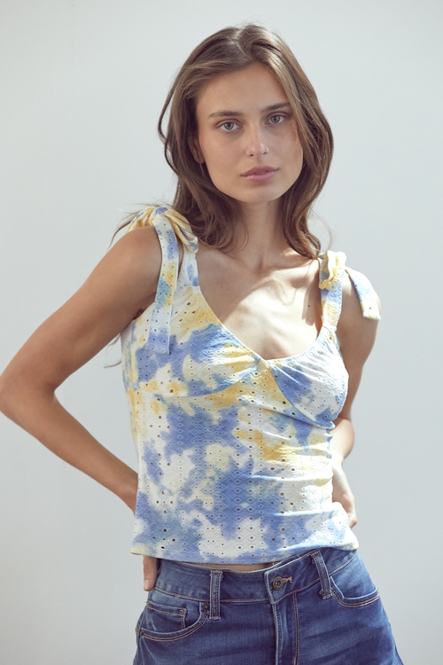 Tie Shoulder Bustier Style Cami Top In Tie Dye Knit Eyelet