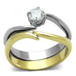 TK1092 – Two-Tone IP Gold (Ion Plating) Stainless Steel Ring with AAA