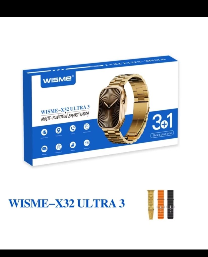 The WISME X32 Ultra 3 Smartwatch combines premium design and advanced technology to give you the ultimate smart wearable experience. With Bluetooth calling, health monitoring, multi-sports modes, and smart notifications, it’s perfect for both men and women. Featuring a full HD touch display, customizable watch faces, durable straps, and long battery life, the X32 Ultra 3 is built for fitness, business, and lifestyle.