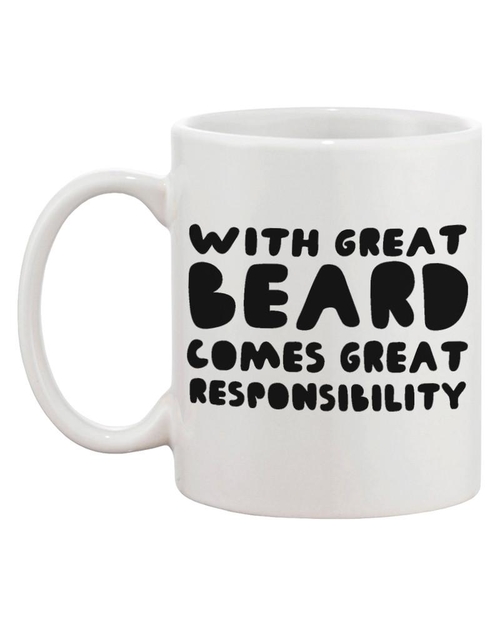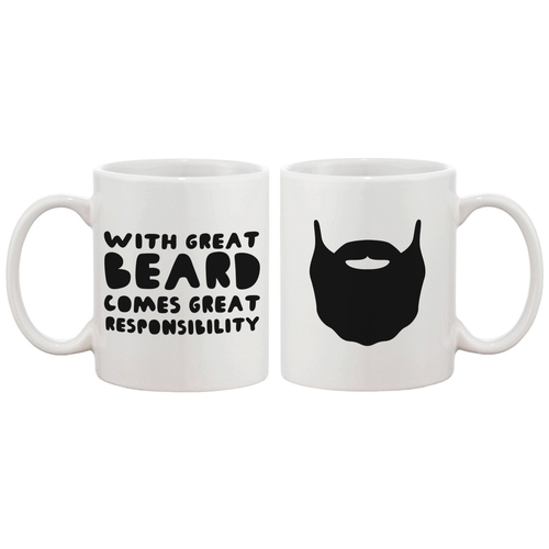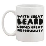 With Great Beard Comes Great Responsibility mug is ceramic and printed on both sides. Suitable for cold and hot liquids, even can be used as decoration or pencil holder or little plant pot. The mug is classic shape and the handle is large C-shape. It is safe for microwave and dishwasher.